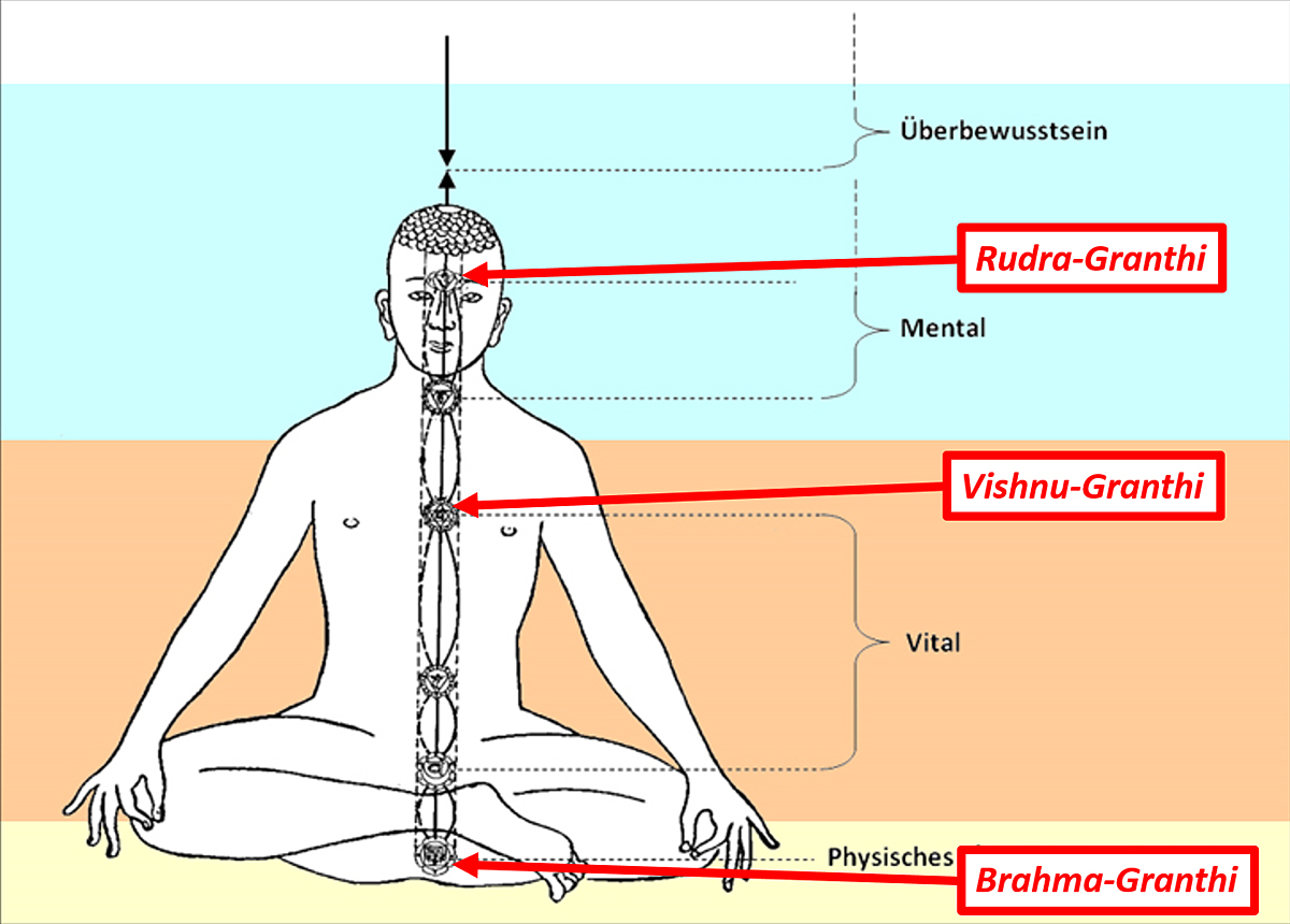 | Brahma-Granthi | mūlādhāra | physisches Mental |